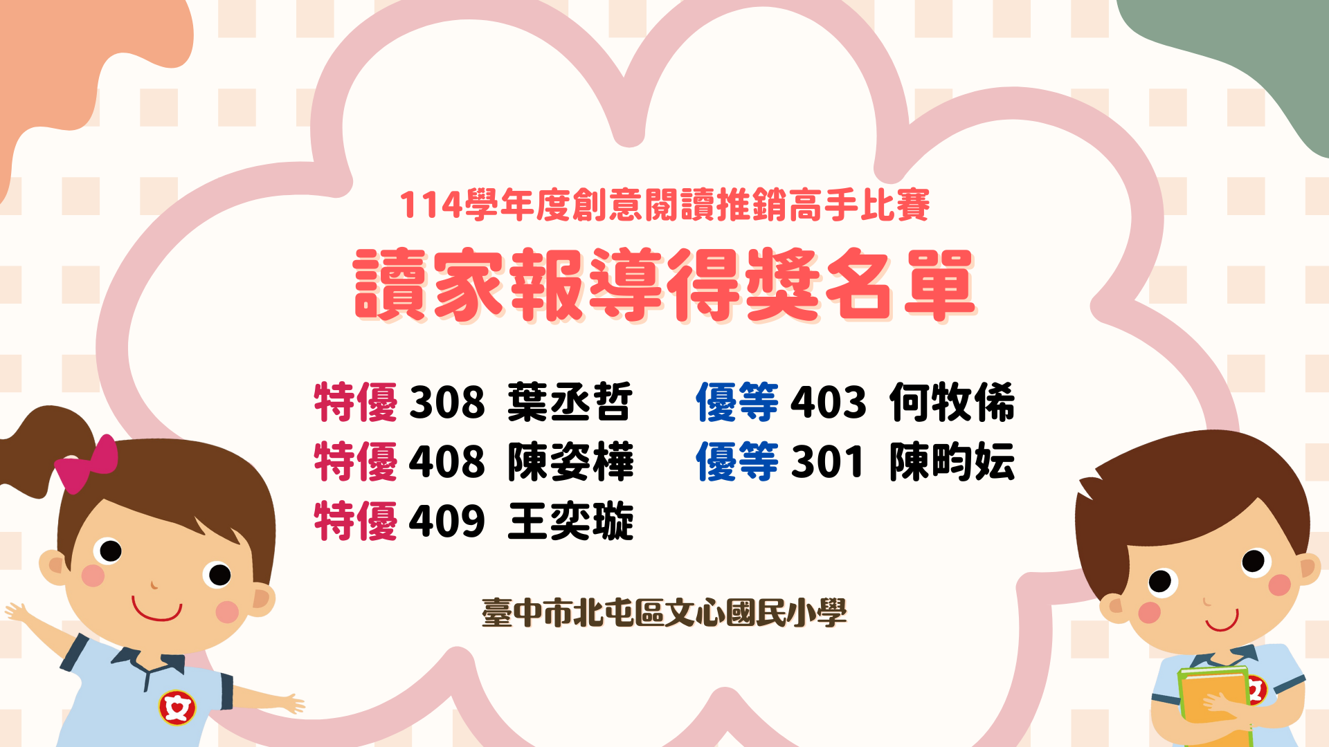 文心國小114學年度創意閱讀推銷高手比賽|讀家報導比賽成績公告